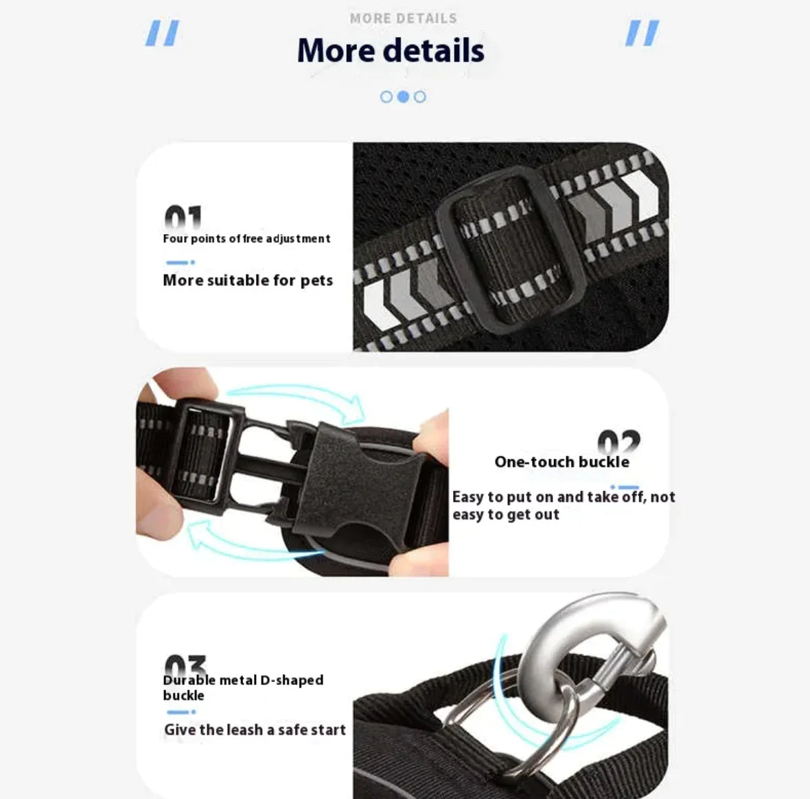 4️⃣ Clip leash to front (no-pull) or back (regular)
